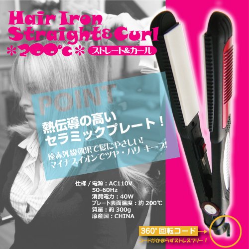 About one and a half minutes to curling irons surface temperature of 200 ℃! Shiny silky hair with a ceramic plate