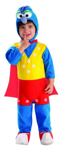 -. Feature : Gonzo romper has attached shoe tops and cape; headpiece included / Rubies' ez-on rompers are delightfully easy to get squirming babies and toddlers into, lets even the youngest member of the family play dress-up / Officially licensed muppet costume created in partnership with disney / Look for muppet costumes in sizes for the entire family, a most-fun group look / Family owned and family focused, rubie's has been making dress-up fun since 1950