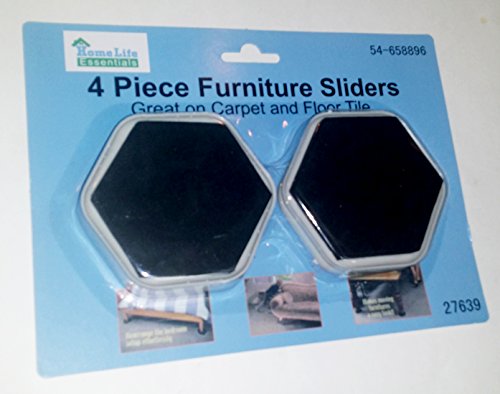 -. Brand : HomeLife Essentials -. Color : Black and White -. EAN : 0643117102696 -. Feature : 4 piece Furniture Sliders / Great on Carpets and floor Tiles / Prevent scratching and smudging on hard floors / Low Friction bottom surface / Strong Foam friction Grip on top side of slider -. Label : Home Life Essentials -. Manufacturer : Home Life Essentials -. PackageQuantity : 4 -. ProductGroup : Home Improvement -. ProductTypeName : HARDWARE -. Publisher : Home Life Essentials -. Studio : Home Life Essentials -. Title : 4 piece Furniture Sliders for moving sofas and other heavy furniture -. UPC : 643117102696