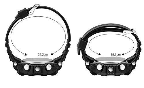 -. Feature : Length of watch band: from 6.14 to 8.74 inches / Optimal age: more than 15 years old / Second, minute, hour, date, day, month display. / Function: light, waterproof, alarm, hourly-chime, chronograph. / Japanese quartz movement, perfect choice for your children.