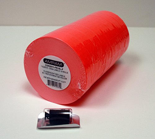 Amram 20x11 Fluorescent Red Pricemarker Pricing Marking Labels, 1 Sleeve of 8 Rolls/20,000 Labels. Includes 1 Free Ink Roller Replacement.