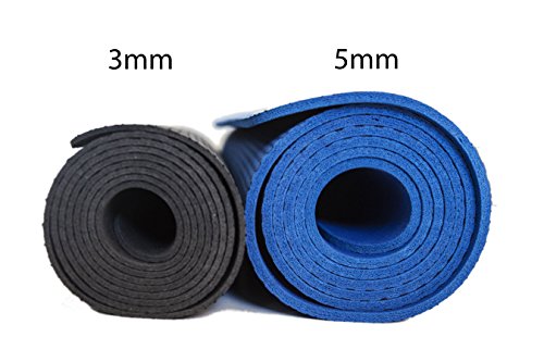 - DESIGNED FOR COMFORT - Enhanced cushioning on the mat is designed to protect your joints and provide an extremely comfortable surface for longer sessions. The 5mm version is extra thick and offers more cushion than the 3mm version. The 3mm version is lighter than the 5mm version and may be better as a travel yoga mat.