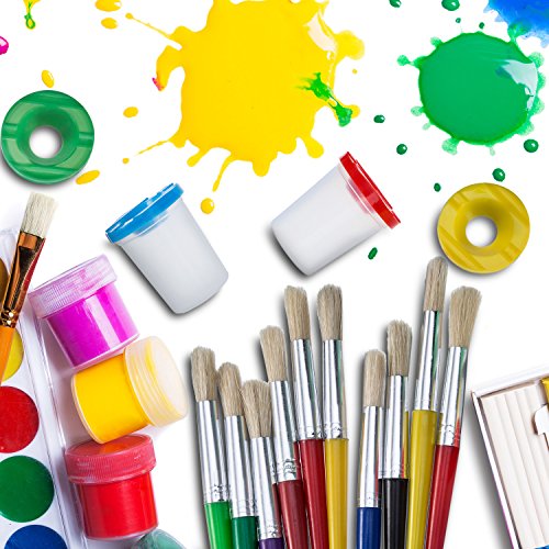 Shappy 4 pieces spill proof paint cups in 4 colors and 10 pieces assorted colored brushes set