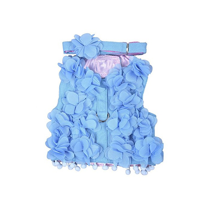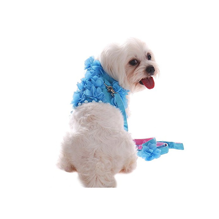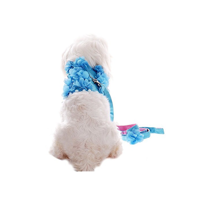 AWHAO 애완동물복 견용 하네스 리드 세트 꽃무늬 도그용 도그 웨어 목걸이동 돌아가 귀여운