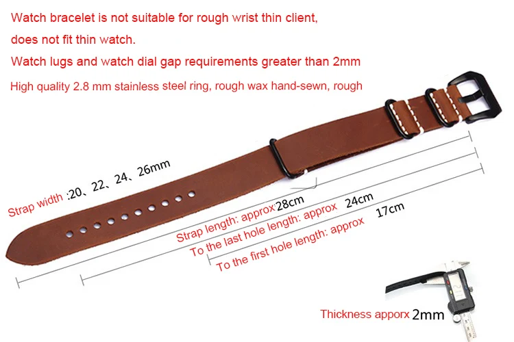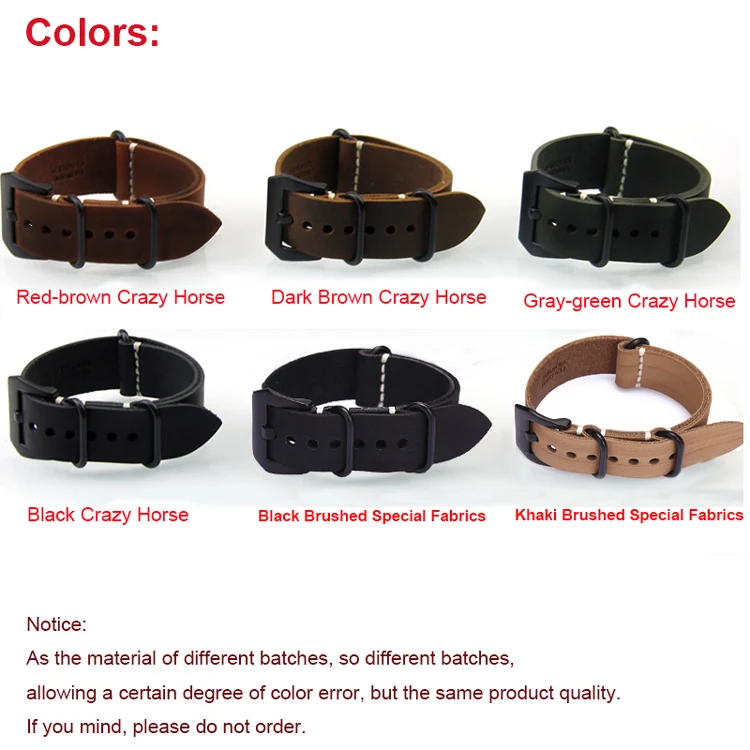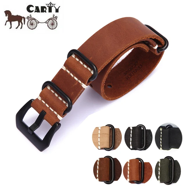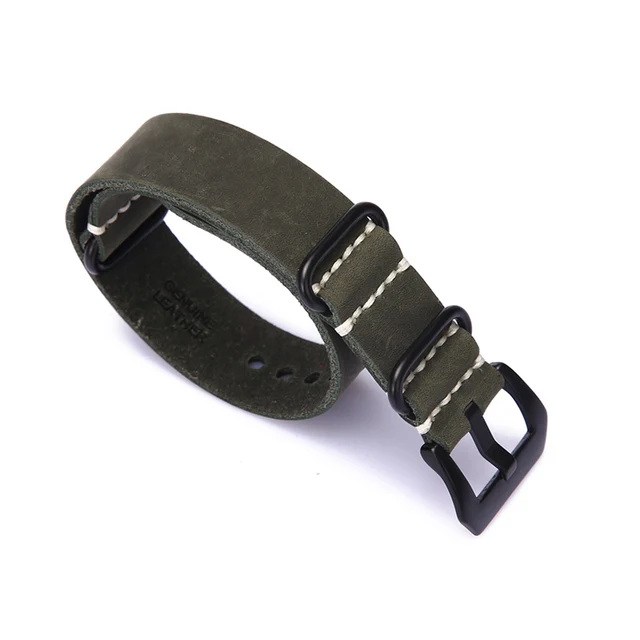| [해외] 수제 시계 밴드 스트랩 Zulu 가죽 스트랩 팔찌 20 미리메터 22mm 24 미리메터 블랙 버클 남성 스포츠 육군 시계 |