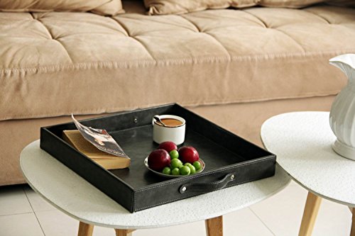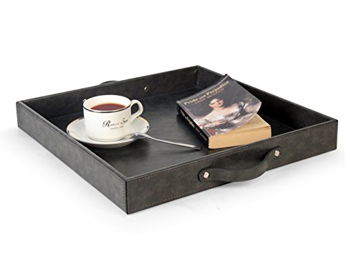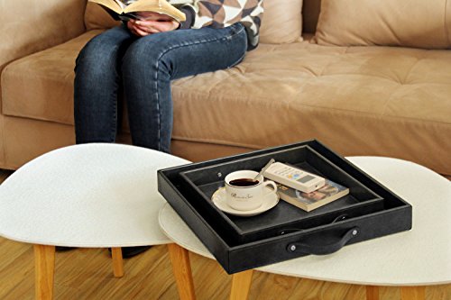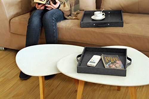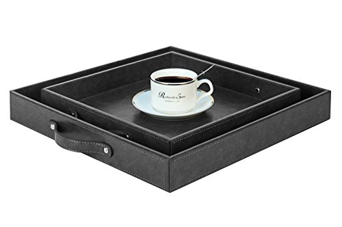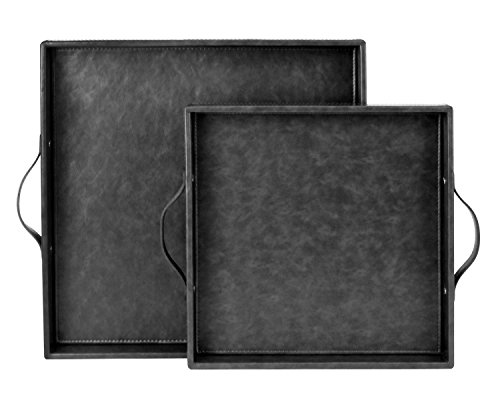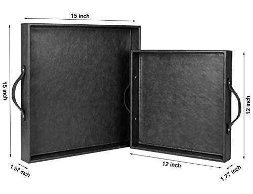 PU Leather Square Butler Serving Tray, Coffee Tray with Handles, Dark Grey, Set of 2, S: 12 x 12 x 1.77 inches, L: 15 x 15 x 1.97 inches