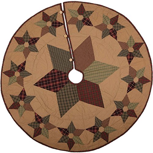 - Enlarged 6-point star in center in various brick read, moss green, and black plaid fabrics