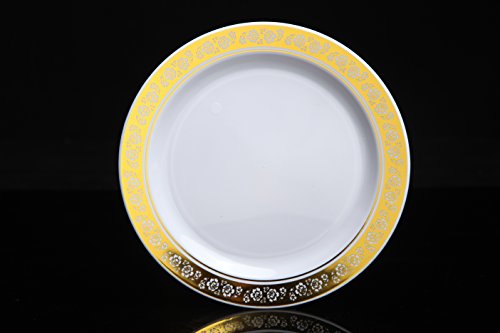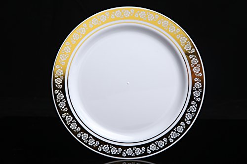Home Value 7.5" Elegant Round Plastic Dinner Plates, White and Gold, 120 Count