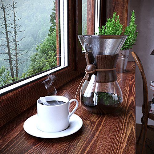 -. Title : Pour Over Coffee Maker with Borosilicate Glass Carafe and Reusable Stainless Steel Filter by Comfify - Manual Coffee Dripper Brewer with Real Wood Sleeve - 30 oz.