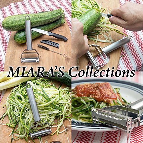 - Feature : ✔KITCHEN MUST HAVE JULIENNE PEELER (XMAS SALE Is ON) !!! - Wow Best Fantastic Julienne Vegetable Peeler, ALL IN ONE Vegetable + Fruits Peeler + Julienne vegetable slicer + Cheese Shredder + Grater + Cutter + Garnishing salads + remove potato eyes - prepare healthy Zucchini spaghetti, grain-free lasagna, Noodles, Pasta. Great Handy tool - stored easily in your kitchen. / ✔CUSTOMER'S CHOICE FOR THE BEST JULIENNE VEGETABLE PEELER !!! - Health conscious customers, professional cooks, BBQ Lovers - Look at all the real customers five star reviews like yourself who have chosen our # 1 Rated MIARA`s Julienne vegetable peeler bundle and been thrilled with decision of buying it. / ✔DISHWASHER SAFE & ULTRASHARP STAINELESS STEEL JULIENNE PEELER!!! - Premium Quality brushed stainless steel metal with sturdy & sharp blades - Comfortable handle and perfect fit for your kitchen tools - Easy to clean - Rust FREE Vegetable Peeler / ✔SURPRISE BUNDLE!!!- Our Best Stainless Steel Julienne Vegetable Peeler Comes with FREE CERAMIC Knife + CLEANING BRUSH + RECIEPE E-book containing healthy fruits & vegetable recipes - Limited Time Only Offer - $30 bundle great Sale Price- FANTASTIC GIFT FOR LOVED ONE DEAR WIFE, MOM & SISTERS!!!! / ✔100% CUSTOMER SATISFACTION!!! - When you combine our BEST customer choice stainless steel Julienne vegetable peeler with the SURPRISE BUNDLE FREE CERAMIC Knife coming from a family owned business makes it the best possible offer on Amazon today. We love our products and customers, if you are not satisfied with your julienne vegetable peeler for any reasons return it for hassle FREE no questions asked. We back our vegetable julienne peeler with complete 100% guarantee.