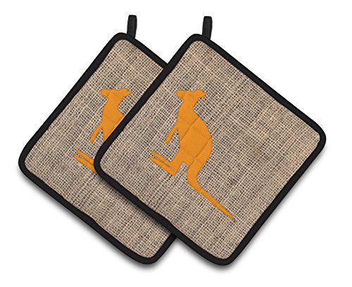 Caroline's Treasures Kangaroo Faux Burlap & Orange Pair of Pot Holders BB1008-BL-OR-PTHD, 7.5HX7.5W, Multicolor