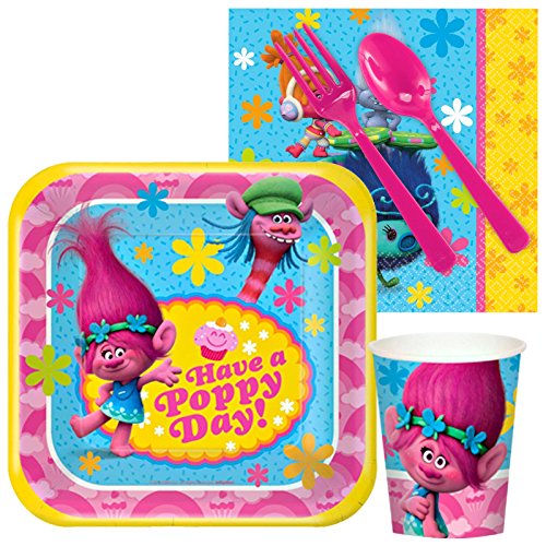 -. Feature : Includes (8) paper dessert plates, (16) beverage napkins, (8) 9 oz. paper cups, and (8) sets of plastic forks and spoons. / Add matching tableware, favors, accessories, or a party kit bundle to complete your birthday party! / Features Poppy and other popular Trolls characters!