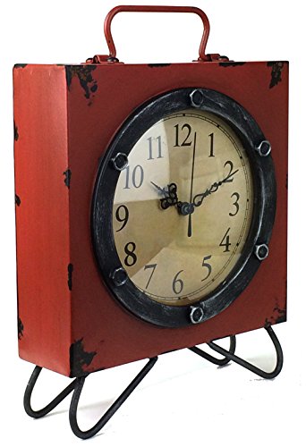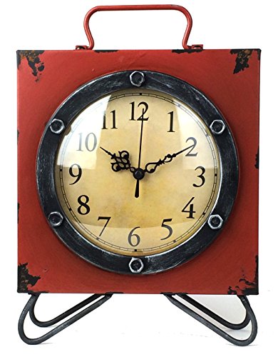A great addition to any space, this Vintage Table Clock features both a retro design and a secret compartment. Use it to store extra batteries or hide valuables. The clock emulates the look of a vintage metal tin with a distressed red painted finish.