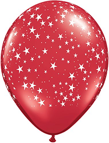 LA Balloons 37085 "Stars-A-Round" Qualatex Latex Balloons (50 Pack), 11", Ruby Red