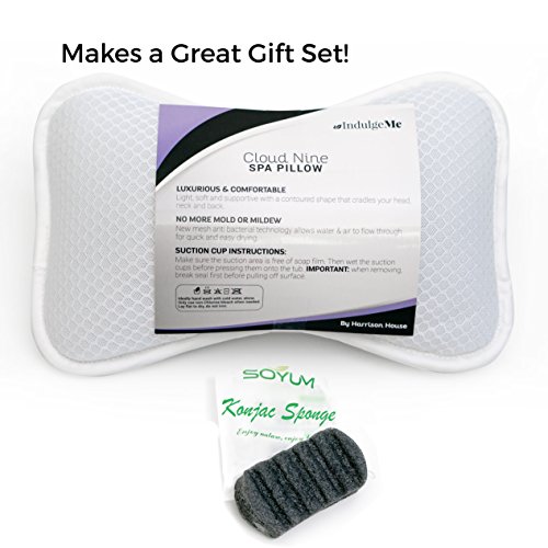 GREAT GIFT SET: This white spa pillow comes with a hot selling Konjac Bath Sponge making it the perfect gift idea for any occasion from birthdays to Mother’s Day! The bamboo charcoal konjac sponge will gently exfoliate and deep cleanse your skin.