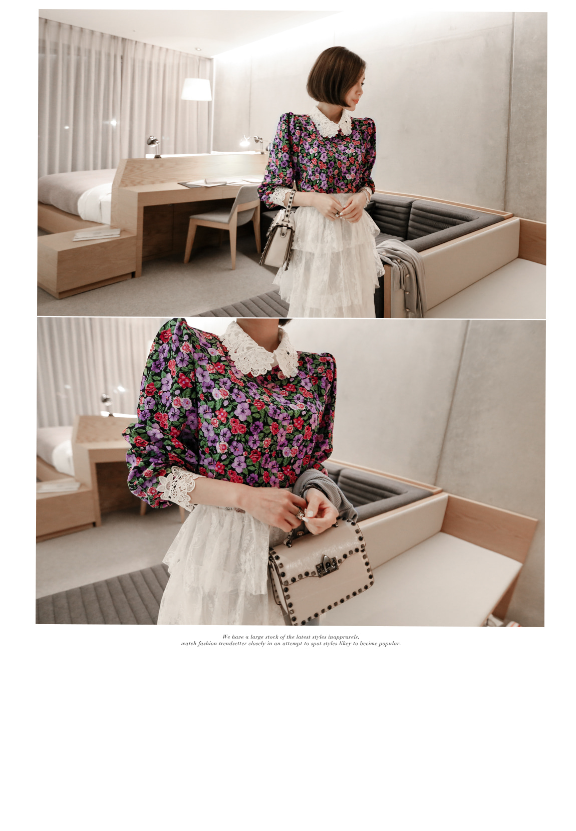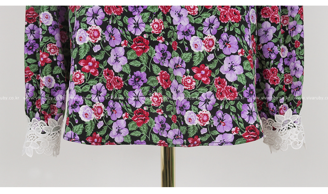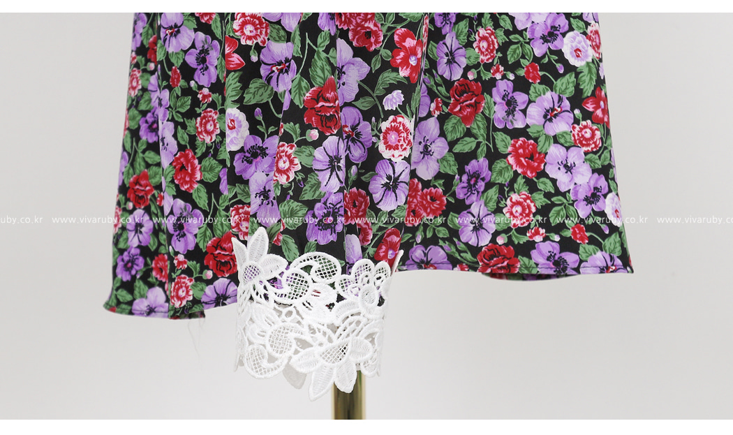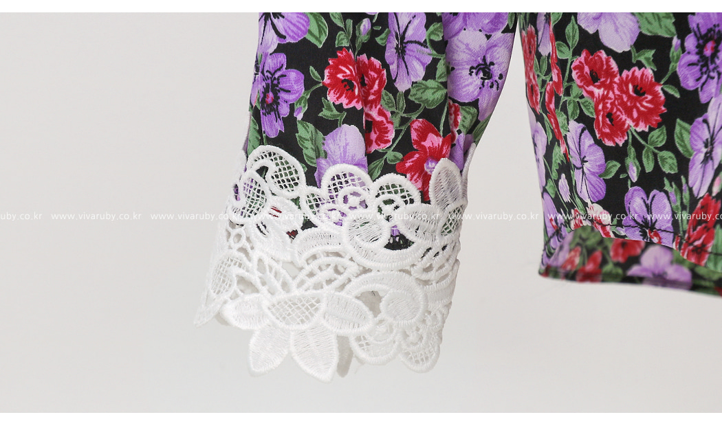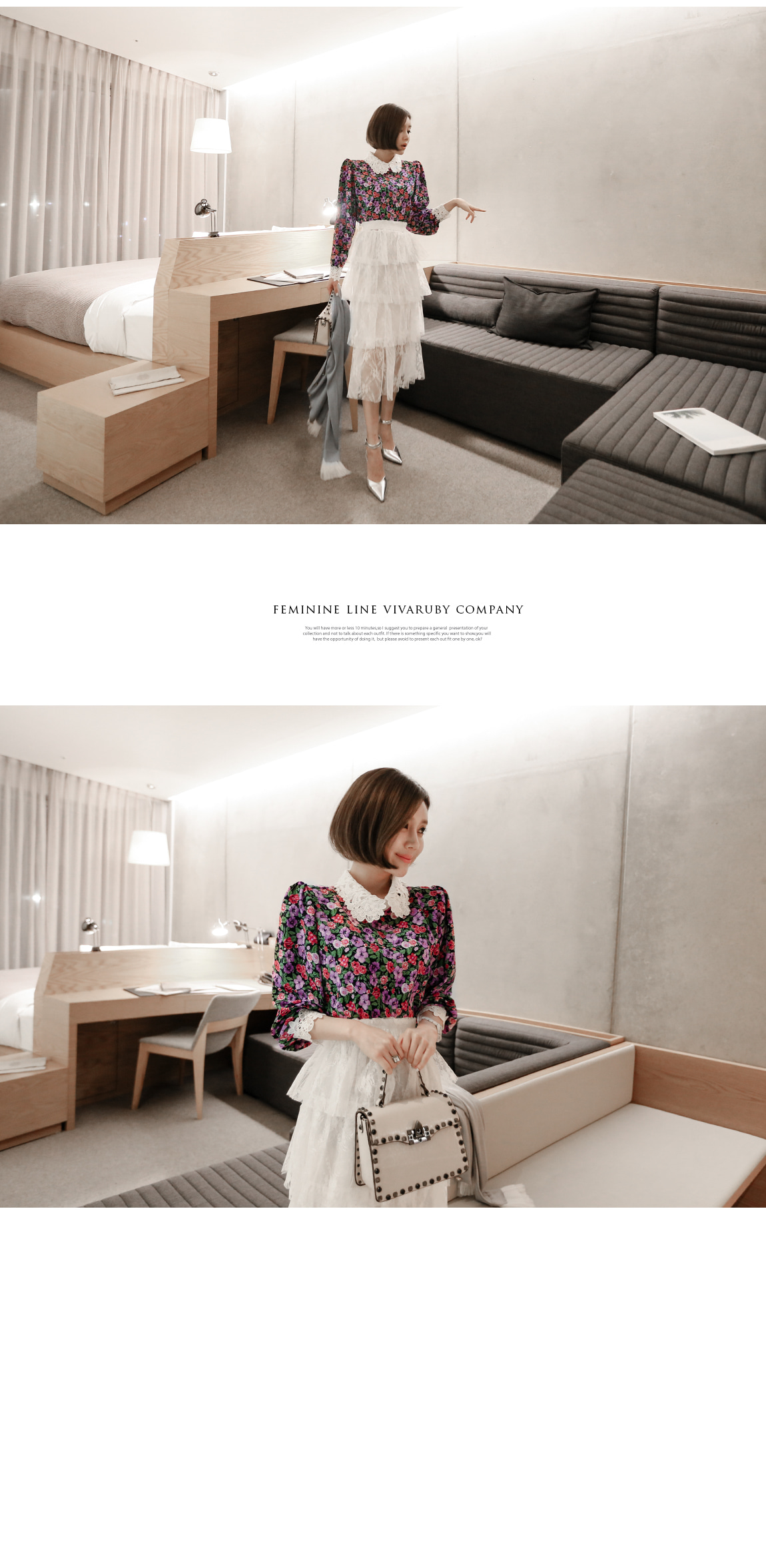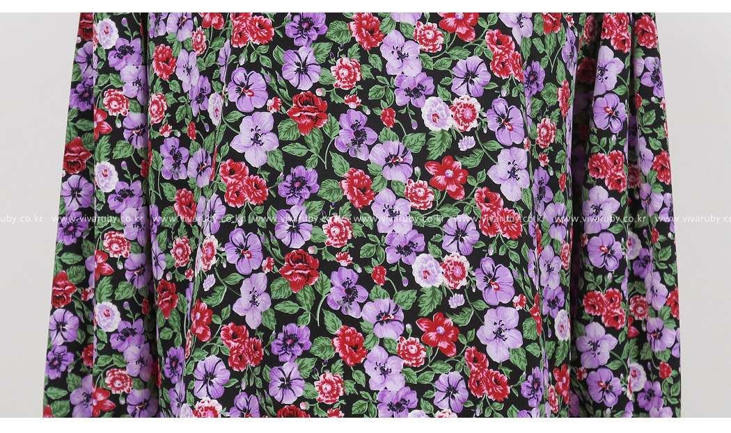 全体的なフラワーパターンでロマンチックなポイントを与え、