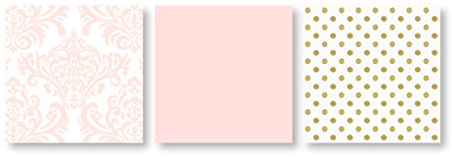 -. Title : Blush Pink White Damask and Gold Polka Dot Amelia Girl Baby Bedding 4 Piece Crib Set Without Bumper
