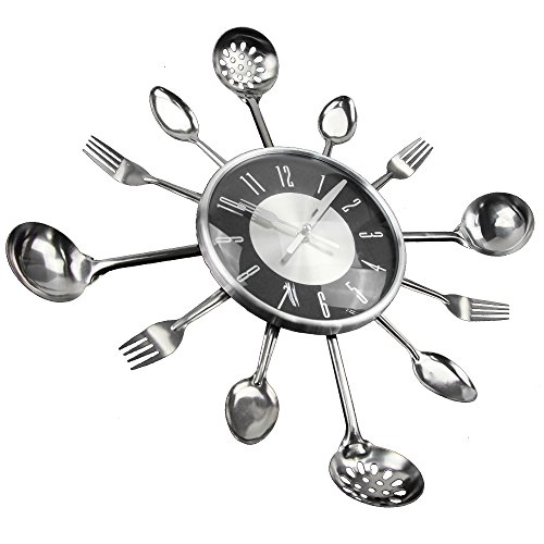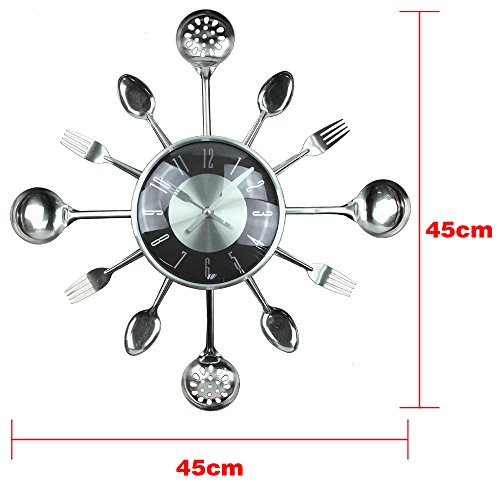 -. Feature : Clock size:18''(45*45*6.2cm) / Powered by 1 AA battery (Not Included) / Decorate your kitchen or eating area with this attention getting clock. / Interspersed are silver-toned shimmering forks, soup spoons, spatulas and slotted spoons. / Our products have been well tested, examined and packaged before sending off, but we cannot 100% guarantee the items remain undamaged when delivered to you. Any problem please feel free to contact us first so that we can supply the best service for you.
