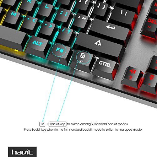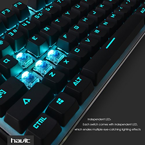 Every floating key with independent blue switch and LED light, Full anti-ghosting, N-key-rollover technology-All keys can work at the same time (Notice: Mac OS support 6-key rollover only).