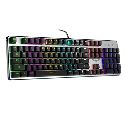 104 keys RGB mechanical keyboard, constructed with floating keys, blue switches (Gaote switch/Otemu switch), programming is not supported (No driver needed).