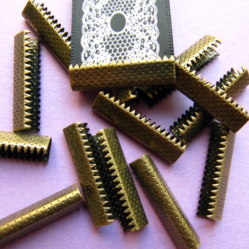 25mm or 1 inch No Loop Ribbon Clamp Crimps -- Antique Bronze