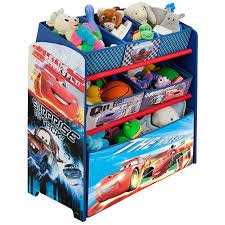 -. Color : Blue -. EAN : 0782361353307 -. Feature : 5 fabric storage bins / Cars Toy Organizer has multiple bins that feature your child's favorite Disney Cars characters / Bottom tier is a toy box for convenient storage / Some assembly required / Cars Toy Organizer meets all JPMA safety standards -. IsAdultProduct : 0 -. Label : Delta -. Manufacturer : Delta -. MPN : na -. PackageQuantity : 1 -. PartNumber : na -. ProductGroup : Furniture -. ProductTypeName : HOME_FURNITURE_AND_DECOR -. Publisher : Delta -. Studio : Delta -. Title : Disney Pixar Cars Multi Bin Toy Box Organizer by Delta -. UPC : 782361353307