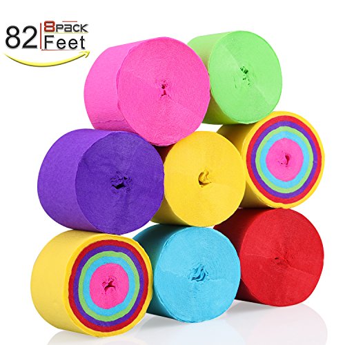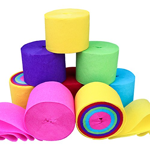 KeNeer 8 Rolls Party Streamers, Multi-color Party Decorations Crepe Paper for Birthday, Wedding, Concert and Various Festivals