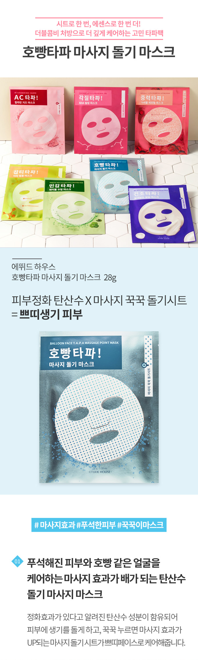 化効果のある炭酸水成分が配合され肌に活気を与えツボ押しマッサージ効果のある突起シートが小顔へとケアします。