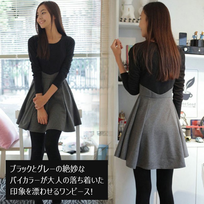 ブラックとグレーの絶妙なバイカラーが大人の落ち着いた印象を漂わせるワンピース♪ | |