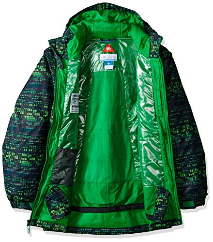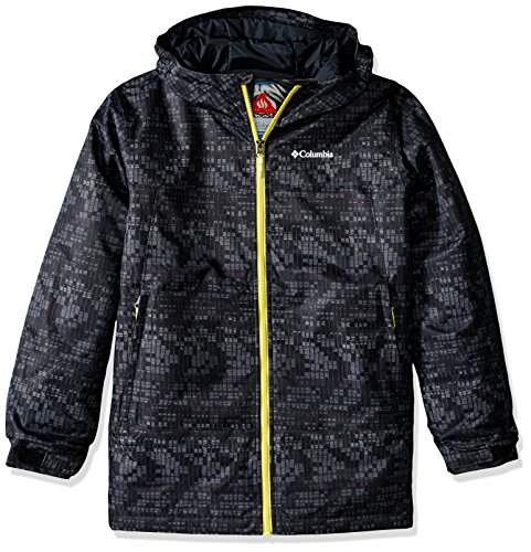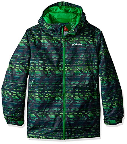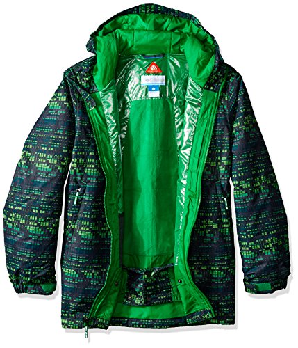 Loaded with features designed for fun on the mountain, the Columbia Boy's Wrecktangle Jacket looks great and performs like a champion, with waterproof performance.Windproof..Attached, adjustable storm hood is helmet-compatible and taffeta lined..Adjustable, snap-back powder skirt with silicone grippers..Ski pass pocket..Media and goggle pocket..Zippered hand pockets..Fleece-lined pockets..Adjustable cuffs..Backpack compatible..3M reflective detail for safety..Performance fit is body contouring that conforms to movement..Center Back Length: 23 in..Feature