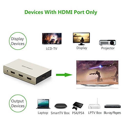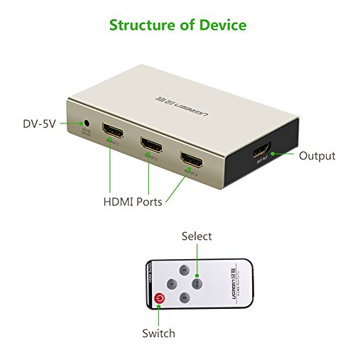 UGREEN HDMI Switch 4K x 2K 3 Port 3 In 1 HDMI Splitter Switcher Box with Supports 3D Compatible for All HDTVs, Blu-ray Players, Xbox 360,PS3/PS4 Game, Apple TV (All Versions) And Other HDMI Devices