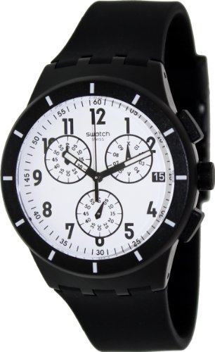 -. Title : Swatch SUSB401 twice again black white dial rubber strap unisex watch NEW