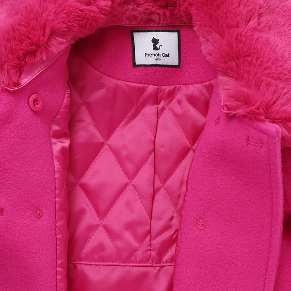 상품설명 선명한 핫핑크 컬러의 코트입니다. 퍼지는 A라인으로 입었을때 갖추어진듯, 귀여운 핏을 연출하실수 있습니다. 원피스 아이템과 반목 티, 치랭스와 함께 코디하시기 좋습니다.