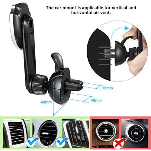 【 No Blocking Air Vent Flow 】: With long arm design to solve the problem of the vents. No worry for winter approaching that hot air from the vent is very bad for phone batteries . No worry for summer approaching that cold air from the vent makes phone wet. The cold air flow make us cool. For example, Texas summer is hot, if vent was blocked, it is so bad.