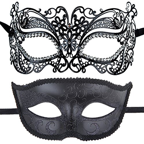 IETANG Couples Pair Evening Prom Venetian Masquerade Masks Set Party Costume Accessory (Black)