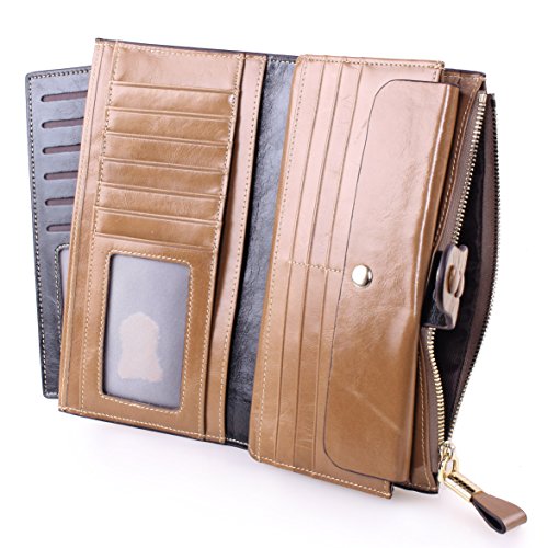 -. Feature : [!]We use the oil wax leather for this wallet,oil wax cowhide is made of full grain leather. Shiny gold-color hardware,heavy duty zipper and detailed contrast stitching brightens up the wallet. FIT IPHONE6. wera resistance,oxidation resistance,convenient opening and closing,highlights the practical bag. Please check the Product Description,we will offer you a detailed briefing about oil wax cowhide.Snap button and zippered closure are designed for the safety of your properties. / This is a powerful Wallet, the whole bag leather made by hand. With 19 card slots, including 2 photo slots, 1 removable card holder, 1 zippered pocket, 4 full-length pockets with one of is snap button closure and can also put bills in it, can put a mobile phone and $. Multi-storey fold is designed for you to keep your things oraganized well and easily hold your Samsung Galaxy Note, Iphone6s, Iphone6 Plus, Fully lined interior includes inside pocket, Detail stitching matches the wallet color. / Features: the wallet appearance concise and atmosphere, powerful at the same time, on the back of the zipper bag, can put change in, coin, cell phone, etc. Capacity is very big, the mobile phone, money, bank cards, notes, can be easily put in. Made of soft leather, and handmade. We have 7 colors,all kind of colors are beautiful and gorgeous,you can choose any color you like,must have one color fit you most. / Product dimensions: (L)7.48" x (W)0.98" x (H)3.94" inches ,and the weight is 5.65 ounces / *Attention:AINIMOER is an US registered trademark,unauthorized sale without permission,we will investigated for legal responsibility.