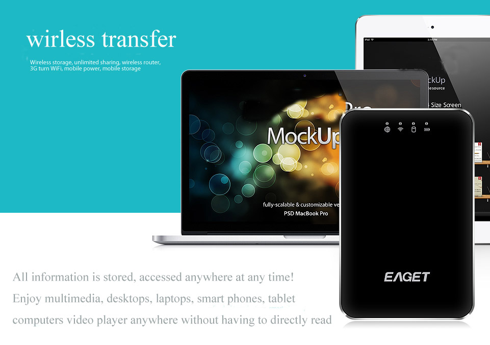 It is not only a wirless, but a combination of high-speed wireless wifi hard disk drive, electronics storage devices, 3G router, mobile power bank for Laptop !#!amp!*! Desktop.