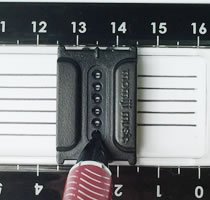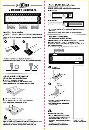 [Parallel lines givin breeze ruler] parallel lines of the holes in the slider until only in this 1-6 draw in the transverse straight to put the pen tip is closed up to 16㎝. Spacing of parallel lines you can choose in the 3mm ? 6mm ? 9mm ? 12mm. Using the stopper ruler and can be a fixed length of 5 stage line it sets the line ends exactly. Stopper ruler is useful for those who are left-handed because it is set from both left and right. ★ staff also tablature also this ruler one OK! ★ a combination of parallel lines in design patterns draw! Watch the video on the website of the "maple music" for details ★.