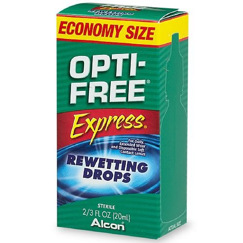Product Description Opti-Free® Express® Rewetting Drops moistens your lenses and helps to remove particulate material that may cause irritation and/or discomfort. 0