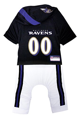 -. Binding : Misc. -. Brand : Pets First -. Color : Black -. EAN : 0849790049758 -. Feature : Officially NFL Licensed! / NFL woven jock tag for personalization. - Team name and logos are printed to make this an outstanding pet outfit / Made with cotton poly for maximum comfort with a Velcro closure for easy fit / Machine wash cold. Do not bleach. Line dry. Do not iron print / For sizing specifications, please refer to the Size Chart below the item's picture, by measuring your pet from the nape of the neck to the base of the tail -. Label : Pets First -. Manufacturer : Pets First -. Model : BAL-4050-SM -. MPN : BAL-4050-SM -. PackageQuantity : 1 -. PartNumber : BAL-4050-SM -. ProductGroup : Pet Products -. ProductTypeName : PET_SUPPLIES -. Publisher : Pets First -. Size : Small -. Studio : Pets First -. Title : NFL Baltimore Ravens Pet Onesie, Small -. UPC : 849790049758