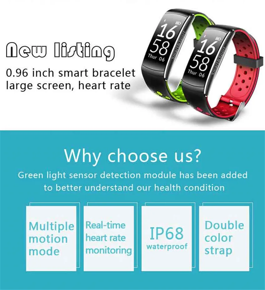 Function:Noctilucent,Passometer,Sleep Tracker,Push Message,Heart Rate Tracker,Alarm Clock,Fitness Tracker,Message Reminder,Call Reminder