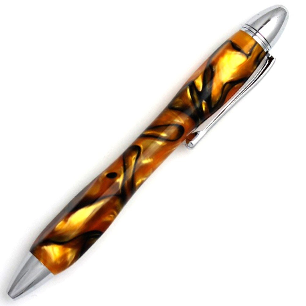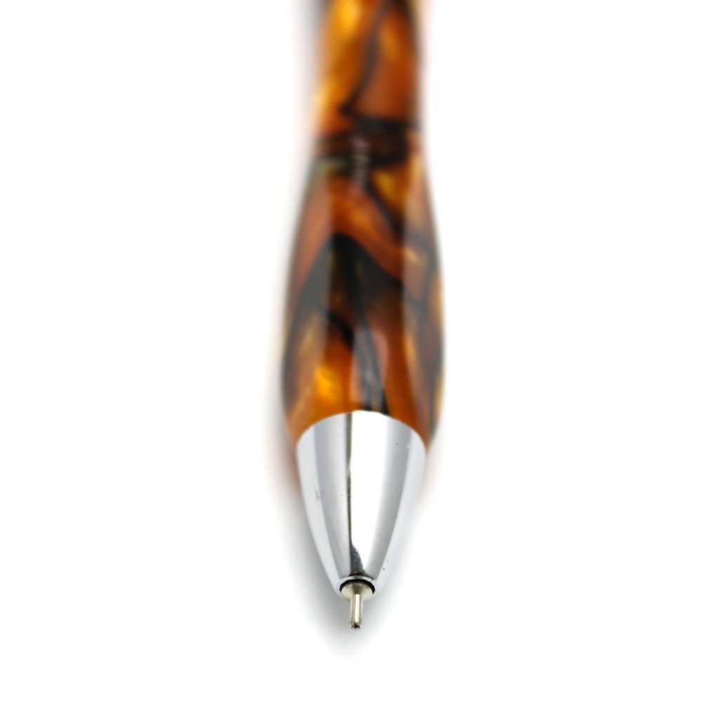 Acrylic and metal shaft rotary type oil ballpoint pen.