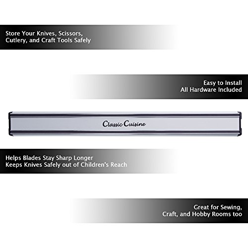 16 inch Magnetic Knife Storage Strip- Aluminum Bar with Heavy Duty Magnets- Space Saving Safe Storage Holder for Knives, Utensils by Classic Cuisine