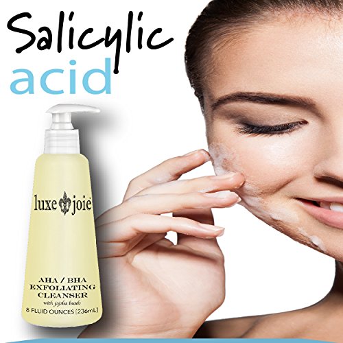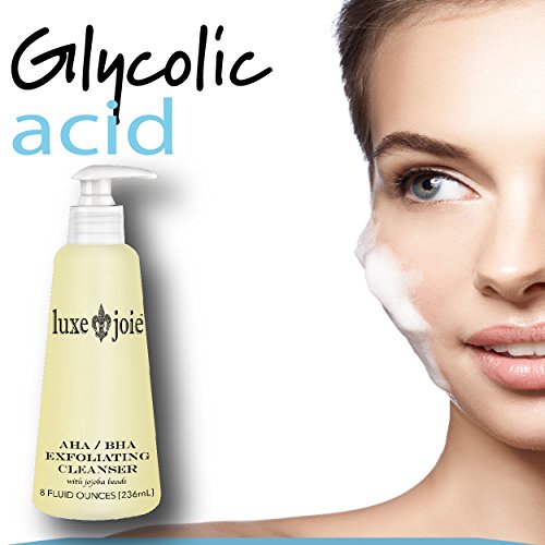 AHA BHA Exfoliating Cleanser 8 oz Exfoliating Jojoba Beads Acne Face Wash Anti-Aging Hydroxy Acids Glycolic for Combination Skin