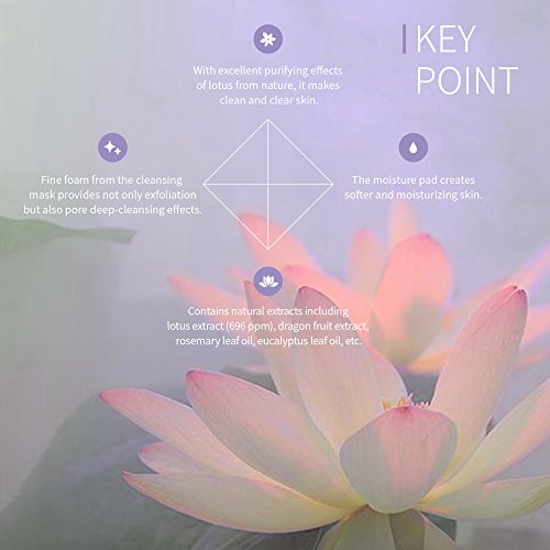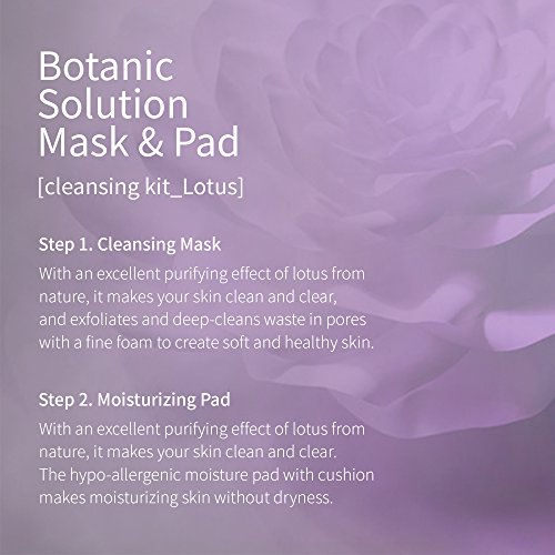 TWO SIMPLE STEP SKIN CARE: Step 1. Botanic solution mask [lotus] With an excellent puryfing effect of lotus from nature, it makes your skin clean and clear, and exfoliates and deep-cleans waste in pores with a fine foam to create soft and healthy skin. Step 2. Botanic solution pad [lotus] With an excellent puryfing effect of lotus from nature, it makes your skin clean and clear. The hypo-allergenic moisture pad with cushion makes moisturized skin without dryness.