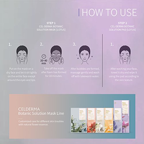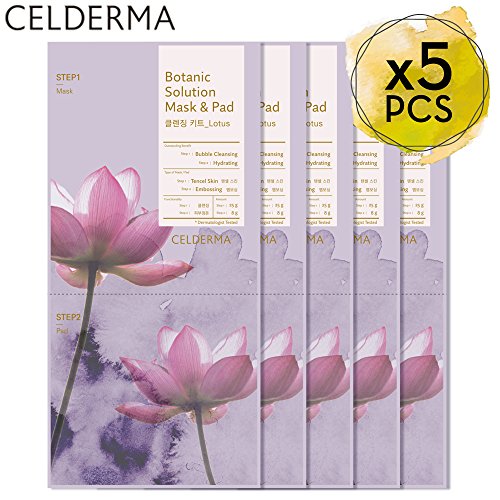 [CELDERMA] Face Mask Pack (5 Sheets), Botanic Solution Cleansing Kit (Lotus), Bubble Cleansing Mask (Step 1) and Hydrating Pad (Step 2)