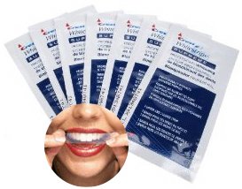 -. Feature : They are flexible strips coated with a whitening gel / Their cleaning action bleaches away stubborn stains below the enamel / They are designed to conform to the shape of your teeth providing a secure but comfortable fit / They come in pouches of 2 strips, one for the top teeth and one for the bottom