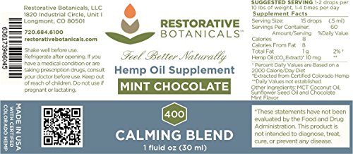 -. Title : CALMING BLEND h.e.m.p Oil Infusion, 400 mg, Mint Chocolate Flavor - 1 ounce (30ml) supports functional calming for stress relief, relaxation, healthy sleep patterns, and achy muscles