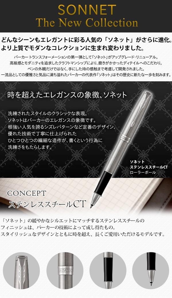 「ソネット」の緩やかなシルエットにマッチするステンレススチールのフィニッシュは、パーカーの技術によって成し得たもの。スタイリッシュなデザインとともに時を越え、長くご愛用いただけるモデルです。 |