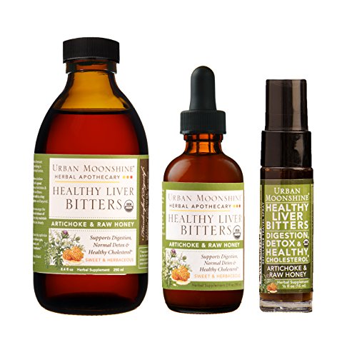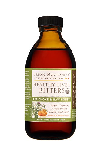 -. Binding : Health and Beauty -. Brand : Urban Moonshine -. EAN : 0851588002746 -. Feature : Artichoke & Raw Honey, strong effective and tasty! 8.4 fl oz bottle has 100 servings. / Use as part of your diet to help maintain a healthy blood sugar level* / Help maintain cholesterol levels that are already normal* / Encourage the healthy production and release of bile* / Certified Organic. Gluten Free. Your liver will love these bitters! -. IsAdultProduct : 0 -. Label : Urban Moonshine -. Manufacturer : Urban Moonshine -. MPN : Urban Moonshine -. PackageQuantity : 1 -. PartNumber : Urban Moonshine -. ProductGroup : Health and Beauty -. ProductTypeName : HEALTH_PERSONAL_CARE -. Publisher : Urban Moonshine -. Size : 8 oz -. Studio : Urban Moonshine -. Title : Healthy Liver Digestive Bitters -- 8.4 fl oz -. UPC : 851588002746